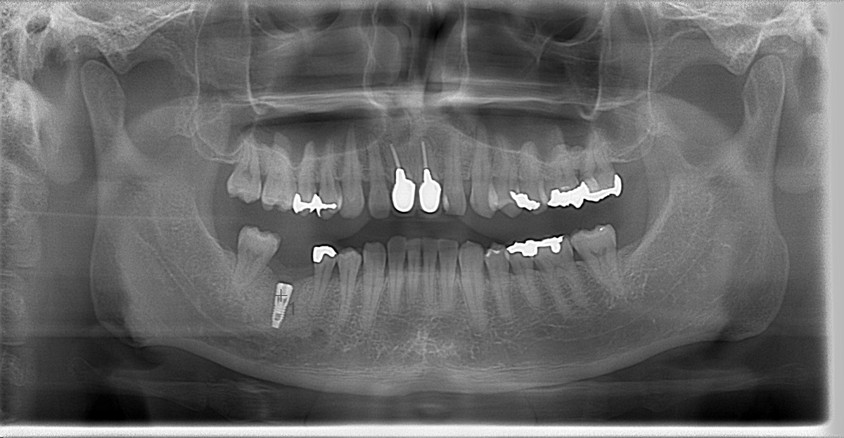 歯冠部(歯ぐきから上の見える部分)がほとんど崩壊し、歯根だけが残った状態です。